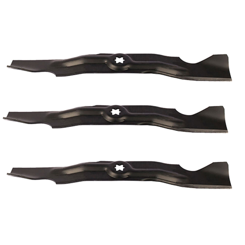 Kit Contains: (3) Spindle Assembly "H" pattern center hole. 6-1/8" Height 5-1/2" Pulley Diameter 6PT. STAR DESIGN Center Hole Replaces Part Number(s): 618-04125, 618-04125A, 618-04125B, 618-04125C, 618-04126, 618-04126A, 918-04125, 918-04125B, 918-04125C, 918-04126, 918-04126A, 918-04126B (1) Belt 1/2" x 134" Made With Aramid Cord Replaces Part Number(s): 754-04044, 754-04044A, 954-04044, 954-04044A (3) 2-in-1 Mower Blade Length: 17-7/8" Center Hole: 6 pt. star Width: 2-1/2" Thickness: 0.149" Specially designed: to replace 6 pt. star center hole Replaces Part Number(s): 490-110-C123, 490-110-M126, 742-04053, 742-04053A, 742-04053B, 742-04053C, 742-04056, 742-04056A, 742-04056A-0637, 742-04056B, 742-04056B-0637, 742-04056C, 742-04056C-0637, 942-04053, 942-04053A, 942-04053B, 942-04053C, 942-04053H, 942-04056, 942-04056A, 942-04056C, OCC-742-04053, OEM-742-04053Reference Numbers: