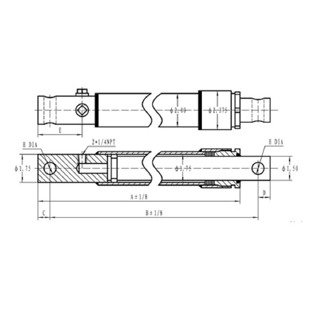 1.5" x 6" A 12-5/8 B 13.00 E 2-3/4 H 3/4 Features: Ductile iron piston. Ductile iron gland, drilled oil passages. Honed steel tube, precision finished for extended seal life. High tensile, hard chrome plated rod. Tube Seal: O-ring Rod Seal: Vee packing and ST wiper 2-Piece 93A urethane piston seal, with a 70A nitrile energizer. All Seals: Manufactured to US specifications.Reference Numbers: