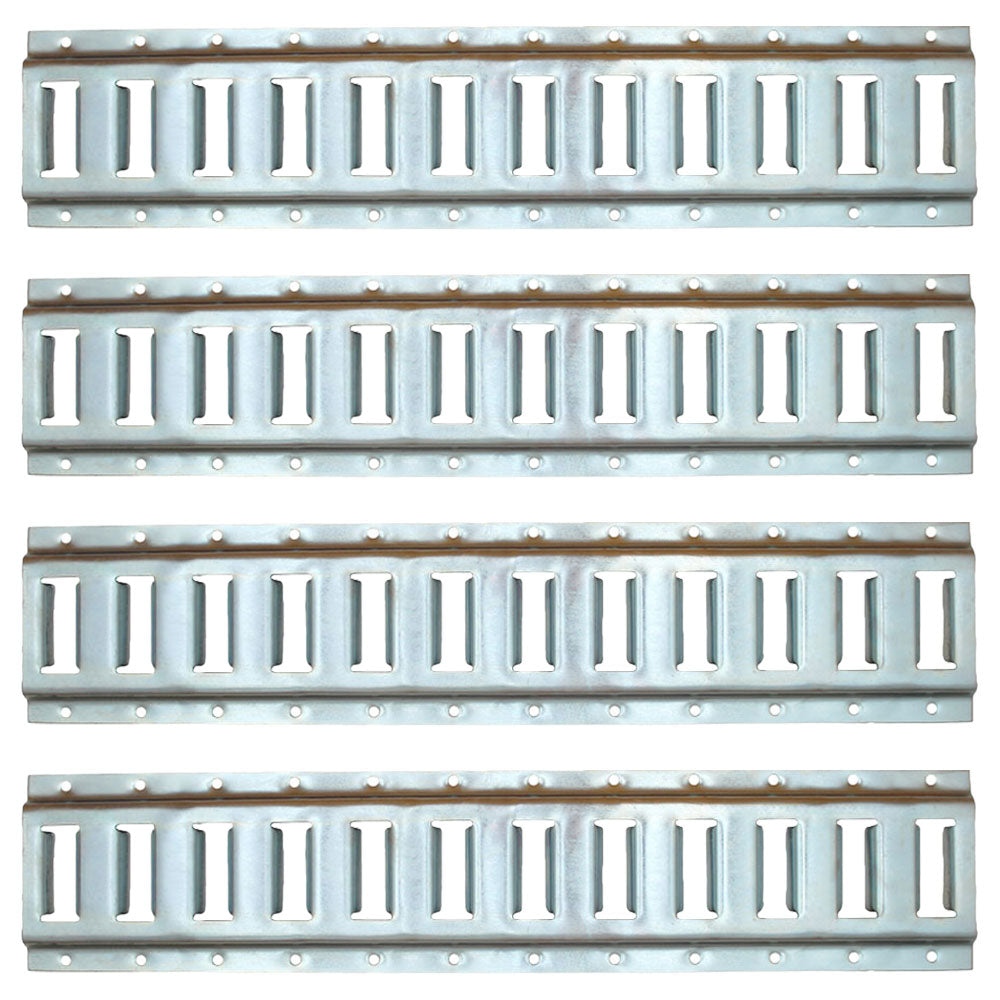 Quantity 4 24" Long 4.87" Wide Horizontal E Track with Silver finish Made from HD steel This track will accept all attachment hardware designed to be used with E-Track including E-rings, beams, bars and strap assembliesReference Numbers:
