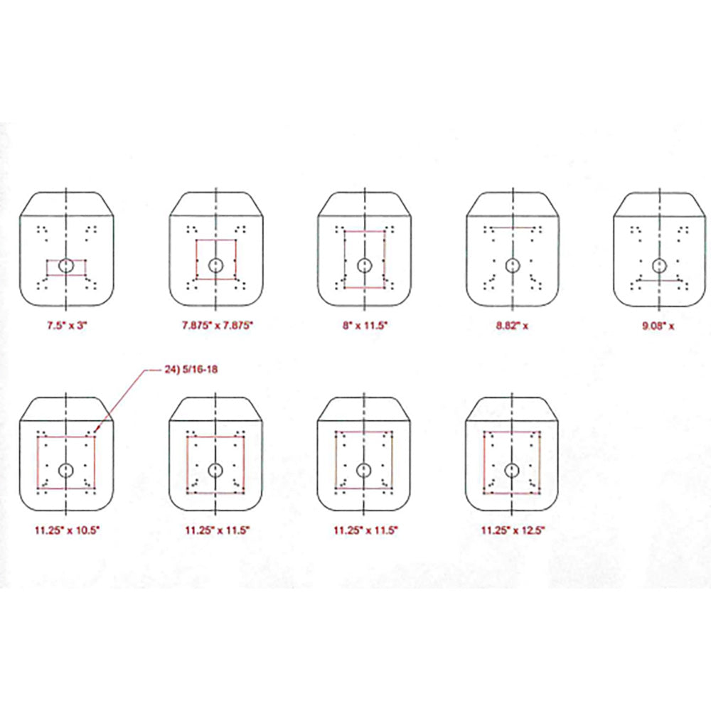 Multiple Mounting Patterns - 7.5" x 3", 7.875" x 7.875", 8" x 11.5", 11.25" x 10.5", 11.25" x 11.5", 11.25" x 12.5"